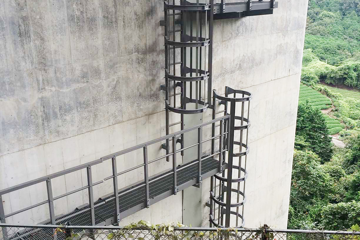 2~3名で1班を組み、橋梁の排水管を設置する作業や橋梁の点検通路(検査路)を設置する作業をします。 仮設足場、高所作業車からユニック、クレーン車を用いて材料を吊り上げて設置していきます。