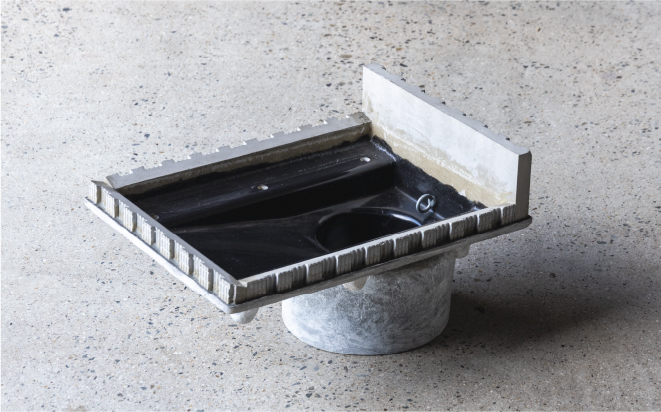 床版上の浸透水を、速やかに排水処理します。ネジの調整により、現場での高さ調節が可能です。※ オリジナル特注品も承ります。