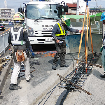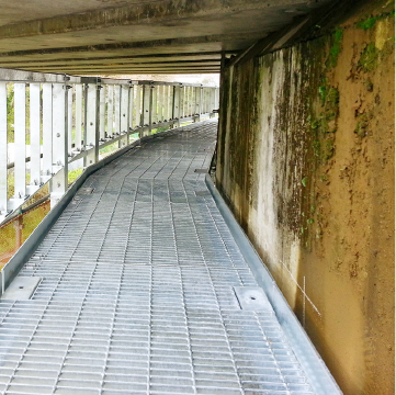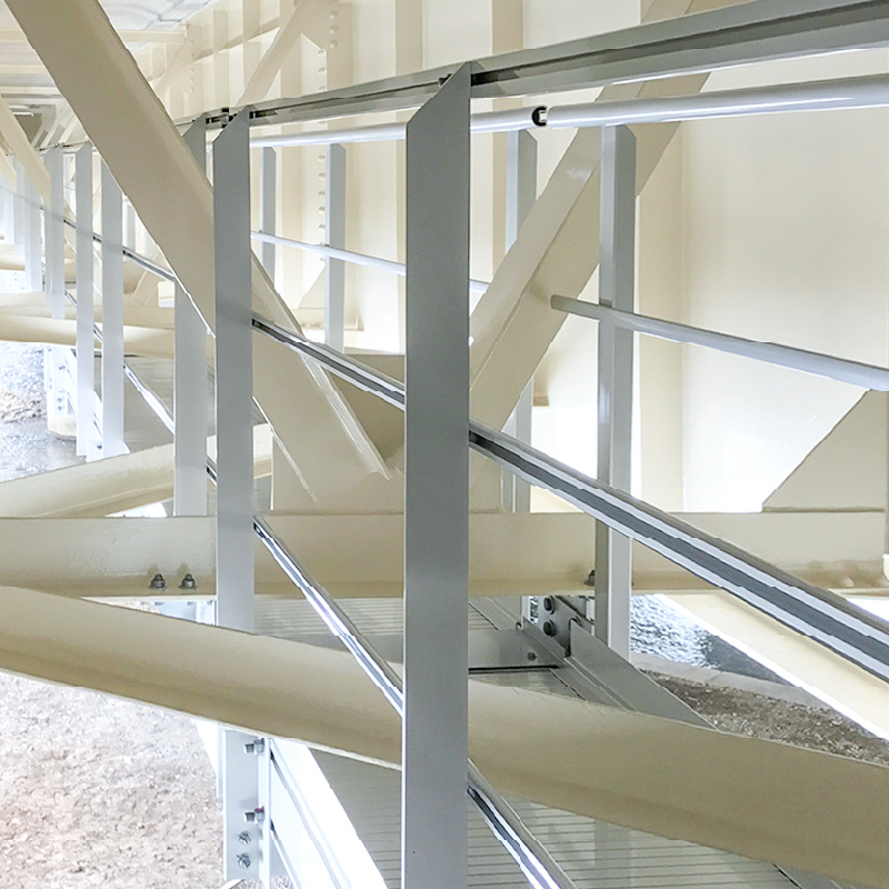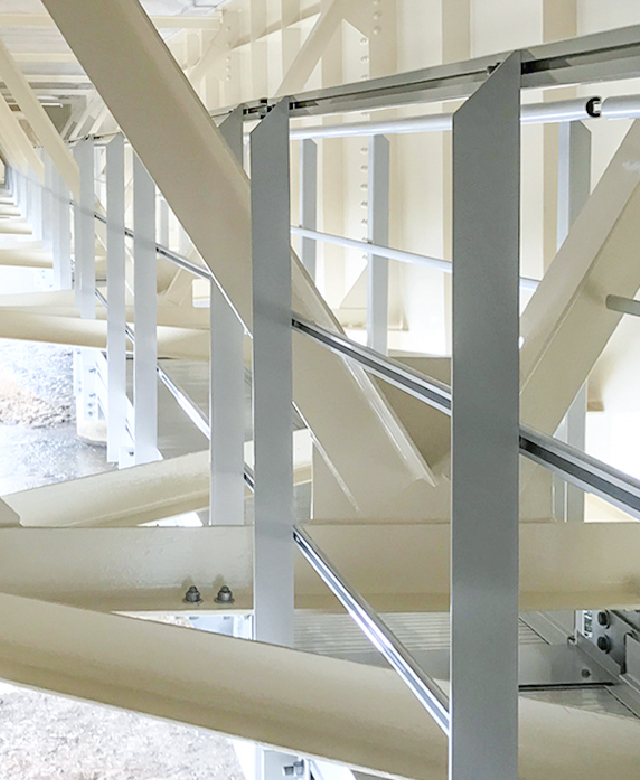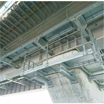 橋梁の点検に欠かせないのが検査路です。新設工事、補修工事の現場で多岐にわたり設計・製造・施工を行っています。特殊な形状や鋼製以外の検査路も対応しております。