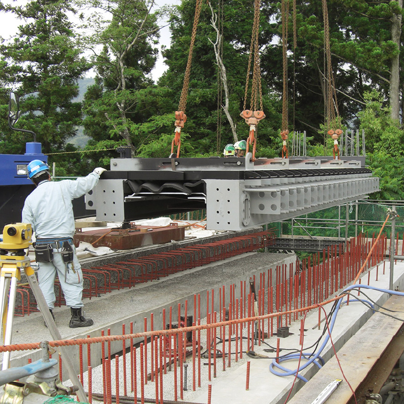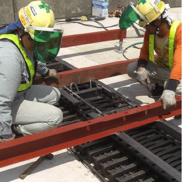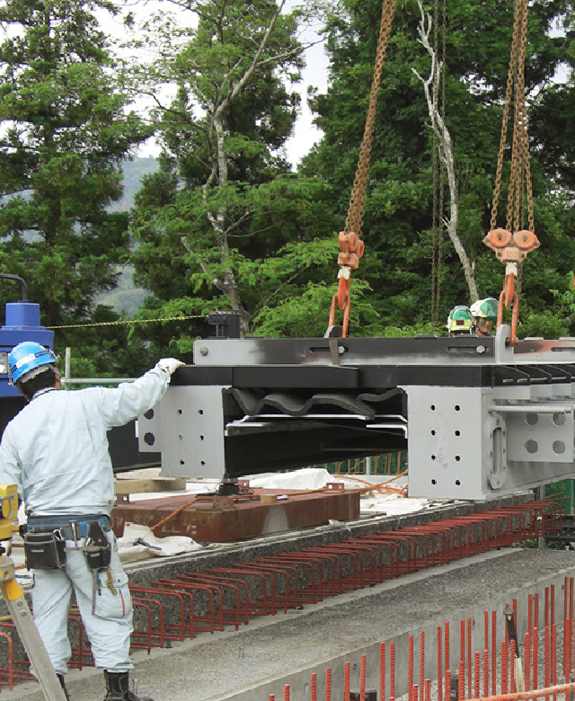 高速道路の橋は、季節や時間帯によって温度変化で伸びたり縮んだりします。 また、たくさんの車が通行することで構造にも力が加わります。 こうした動きに対応するのが「伸縮装置」です。 私たちは耐久性・安全性に優れた伸縮装置を提供し 橋を長く安全に使えるようサポートしています。