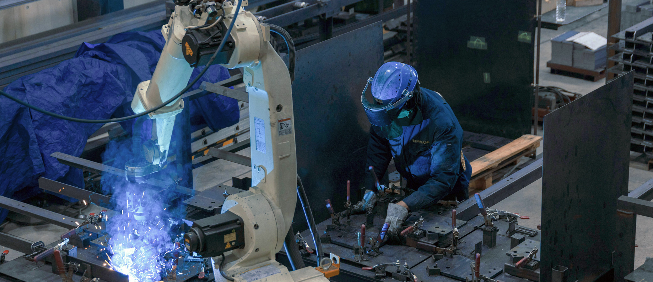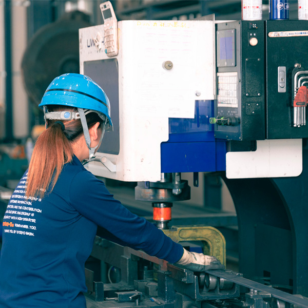 設計図面に基づき、自社の工場で必要な部材の製造を行います。 最新鋭の設備と熟練した技術を持つ職人たちが、一つひとつの部材を高い精度で作り上げます。 自社で製造することで、外部委託によるタイムラグや品質のばらつきを防ぎ、施工現場でのスムーズな組み立ても可能になります。